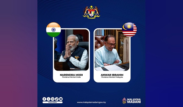 KUALA LUMPUR,17 Jun- Perdana Menteri,Datuk Seri Anwar Ibrahim hari ini menerima sepucuk surat daripada rakan sejawatnya dari India iaitu Narendra Modi yang mengutuskan ucapan Aidiladha kepada beliau dan seluruh rakyat Malaysia.