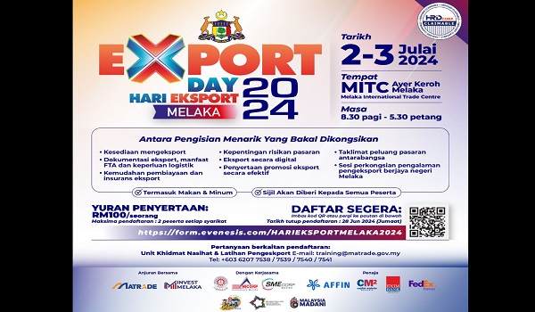 KUALA LUMPUR,30 Jun- Perbadanan Pembangunan Perdagangan Luar Malaysia (MATRADE) akan menganjurkan program Hari Eksport 2024 di enam lokasi iaitu Melaka,Pulau Pinang,Kuala Lumpur,Sarawak,Perak dan Selangor bermula Julai ini.