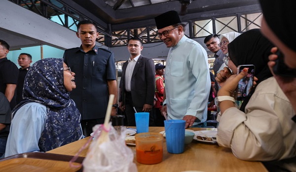 Perdana Menteri Datuk Seri Anwar Ibrahim beramah mesra bersama pelanggan ketika membuat lawatan ke gerai-gerai Dewan Bandaraya Kuala Lumpur (DBKL) di Medan Selera Jalan Raja Muda Abdul Aziz hari ini / BERNAMA