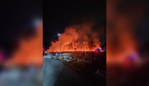 Kebakaran tersebut sebelum itu tular di media sosial memaparkan api yang sedang marak berhampiran kawasan perkuburan itu.