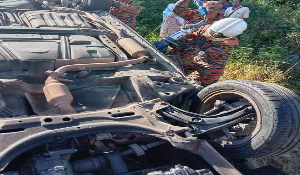 Komander Operasi Balai Bomba dan Penyelamat Kuala Nerang,PBK II Shahibudin Murad berkata setibanya di lokasi mendapati,sebuah kereta jenis Honda City yang terbabas di kaki lima jalan dan terbalik.