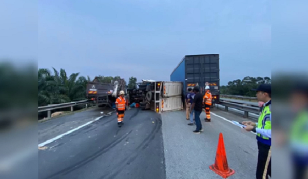 Kelindan maut, pemandu cedera nahas dua lori di PLUS
