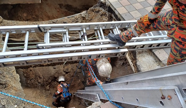 "Pihak bomba mendapati terdapat seorang mangsa wanita warga India terjerlus ke dalam lubang dan tertimbus di bawah tanah.