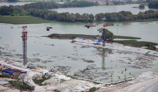 Dalam kejadian kira-kira pukul 2 petang pada Sabtu lepas,tebing di projekberkenaan runtuh menyebabkan limpahan air sungaimemasuki bahagian hadapan tapak pembinaan namun tiada kecederaan dilaporkan. -BERNAMA