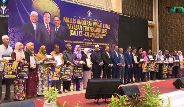 Hadiah disampaikan oleh Menteri Besar Terengganu,Dato’ Seri Ir Dr. Samsuri Mokhtar,dalam Majlis Anugerah Pingat Emas Yayasan Terengganu 2023 yang diadakan buat kali ke-43.