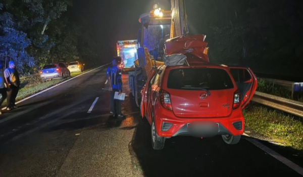 Seorang wanita maut selepas kereta yang dipandunya hilang kawalan dan merempuh sebuah jentolak di Jalan Lencongan Timur,Sungai Petani pagi tadi / Foto RTM