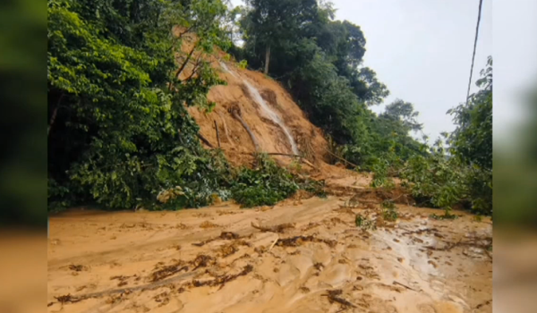 AMPANG,15 Oktober – Hujan lebat sejak awal pagi tadi telah menyebabkan kejadian tanah runtuh di Jalan E6,di sini melibatkan runtuhan lereng bukit seluas 20 x 20 meter.