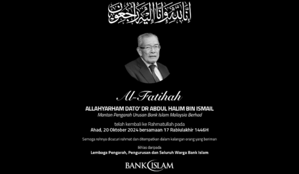 Berita duka itu disampaikan Bank Islam Malaysia Bhd menerusi catatan di laman rasmi Instagram bank tersebut.