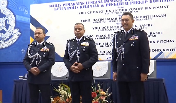 Majlis pemakaian pangkat dan serah terima tugas disaksikan Timbalan Ketua Polis Negara Datuk Seri Ayob Khan Mydin Pitchay di Ibu Pejabat Polis Kontinjen (IPK) Kota Bharu di sini hari ini.