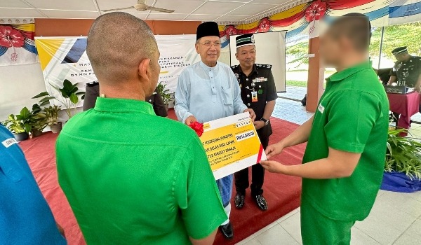 Orang Kaya Bendahara Seri Maharaja,Jeneral Datuk Seri Tan Sri (Dr) Mohd Zahidi Zainuddin menyerahkan menyerahkan sumbangan makanan kepada tahanan di Pusat Koreksional Kamunting
