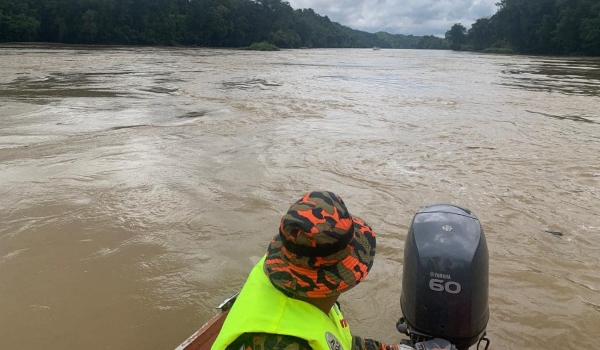 Pasukan bomba melakukan operasi mencari dan menyelamat seorang lelaki yang dikhuatiri lemas di Sungai Rajang,Kapit/Foto Bomba