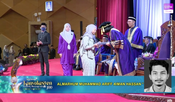 Mana tidaknya,belum sempat Allahyarham Muhammad Ariff Aiman Hassan merasai detik kejayaan itu,kakaknya,Nur Hafizah,tampil mewakili arwah menerima skrol pada majlis konvokesyen baru-baru ini.