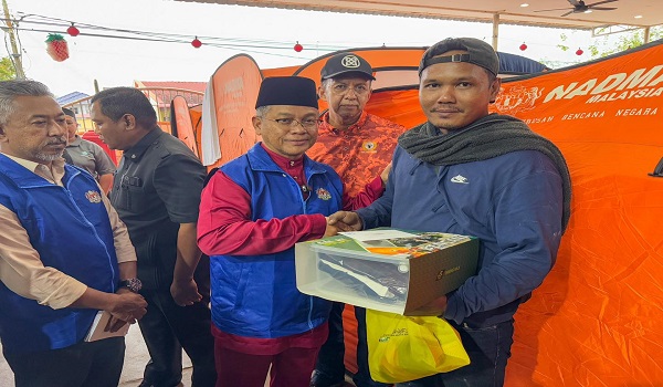 Datuk Dr Mohd Na'im Mokhtar menyampaikan bantuan untuk penduduk terjejas banjir di PPS Dewan Besar Kampung Baharu Dangi