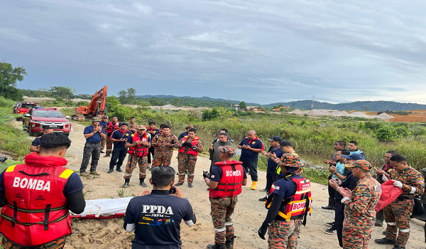 "Pasukan penyelamat yang sedang melakukan pencarian telah terjumpa satu objek bewarna biru menyerupai pakaian mangsa timbul di permukaan air dan tersangkut pada dahan pokok.