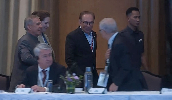 Anwar Ibrahim ketika meninggalkan Mesyuarat The Strategic Vision Group: Russia-Islamic World di Kuala Lumpur hari ini/RTM