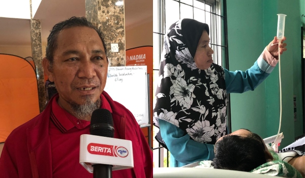 Ketua Kampung Sungai Bedaun,Abang Abdul Nasir Abang Ahmad (kiri) dan Salawati Baid (kanan) ketika ditemui RTM di PPS pagi tadi