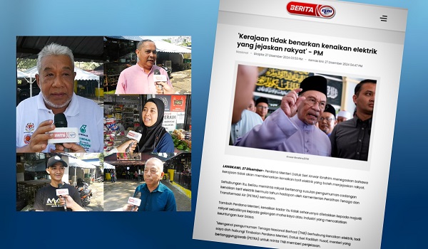 KUALA LUMPUR,28 Disember- Penegasan Perdana Menteri Datuk Seri Anwar Ibrahim mengenai tiada pelarasan tarif elektrik yang membebankan rakyat disambut baik oleh masyarakat.