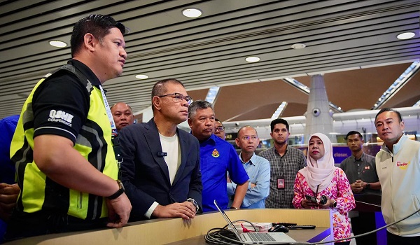 Saifuddin Nasution Ismail (dua kanan) ketika meninjau pintu Gate QR MyBorderPass dan sistem Smart Q di KLIA pagi tadi /FACEBOOK Saifuddin Nasution Ismail