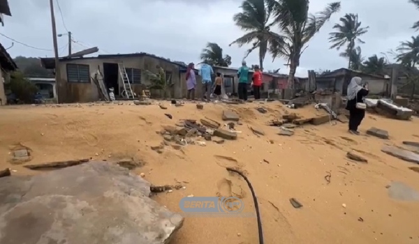 Keadaan di pesisir pantai akibat ombak besar dan air pasang di Terengganu