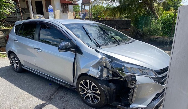 "Setibanya di lokasi kejadian,kereta mangsa hilang kawalan dan melanggar tembok pagar sebuah rumah.