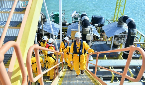 KUALA LUMPUR,10 Februari- Menteri Komunikasi Fahmi Fadzil meninjau integrasi 5G persendirian pertama PETRONAS di Terminal Pengegasan Semula Sungai Udang (RGTSU),Melaka.