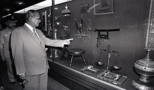 Mantan Perdana Menteri Tunku Abdul Rahman melihat koleksi barangan peribadi milik Tun Abdul Razak di Memorial Tun Abdul Razak bertarikh 6 Mei 1982/Foto Bernama