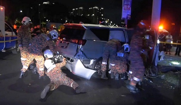 Kemalangan itu menyebabkan tiga mangsa dewasa tersepit dalam kenderaan dan mengalami kecederaan di kepala serta perut,manakala seorang wanita patah kaki.