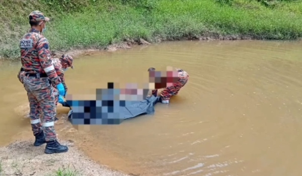 Pasukan bomba bertindak menarik mayat berkenaan menggunakan tali sebelum diserahkan kepada pihak polis untuk tindakan lanjut.