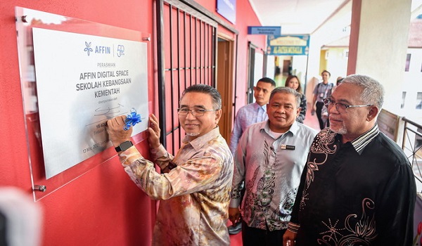 Timbalan Menteri Pertahanan Malaysia (MINDEF),Adly Zahari,menandatangani plak perasmian sempena Majlis Peluncuran Program Digitalisasi Affin Digital Space di SK Kementah/ BERNAMA