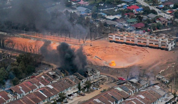Lokasi kebakaran melibatkan saluran paip gas di Jalan Putra Harmoni,Putra Height,Subang Jaya/ BERNAMA