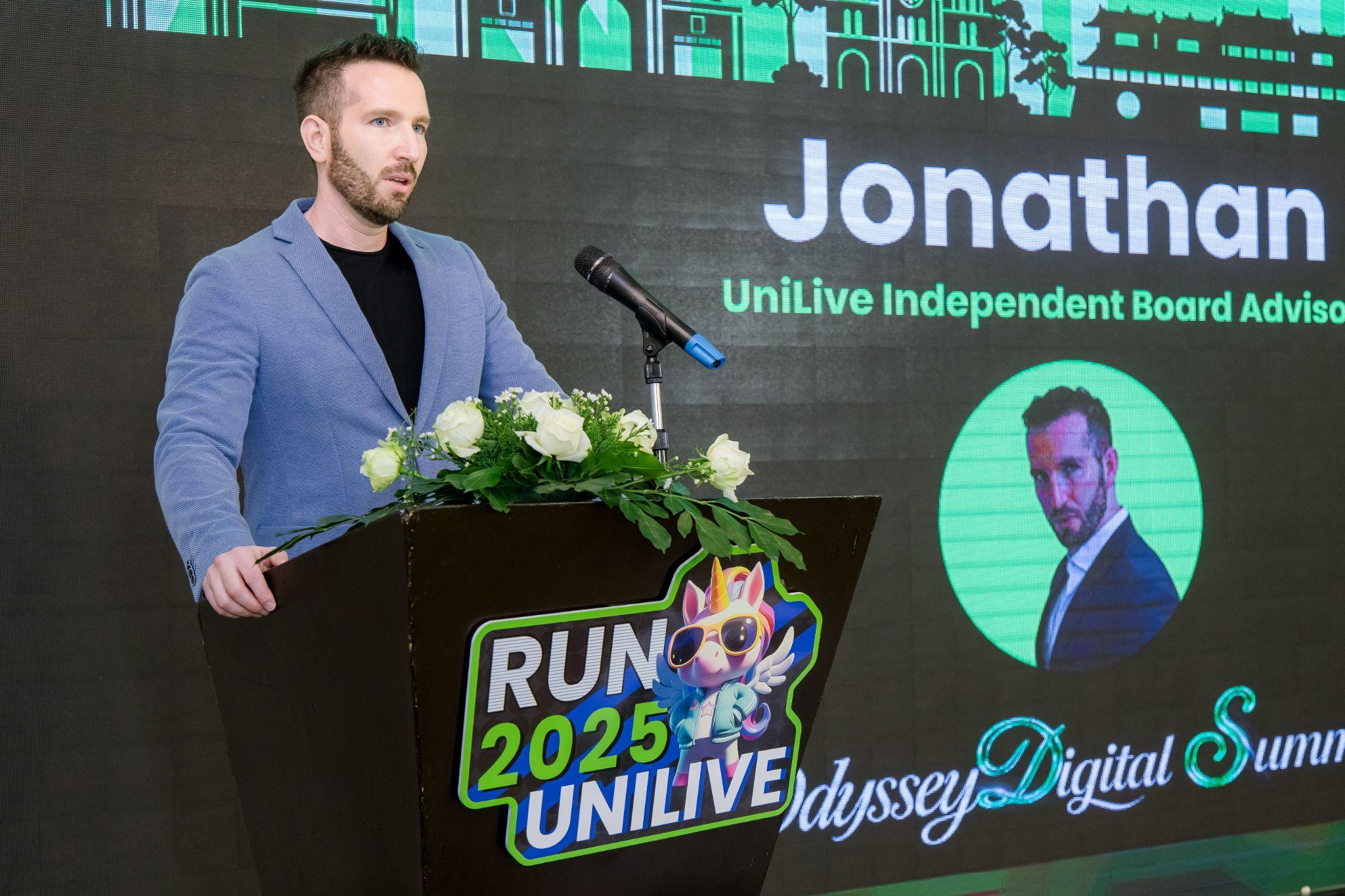 Direktur Independen dan Penasihat UniLive Jonathan kemudian naik ke panggung, menyampaikan pidato pembukaan yang menginspirasi. Berfokus pada nilai-nilai inti Web3 yaitu "kedaulatan pengguna dan pengembalian nilai," ia berbagi perspektif yang mendalam dan sangat memuji inisiatif strategis dan pencapaian UniLive dalam membangun ekosistem terbuka dan membentuk kembali nilai konten.