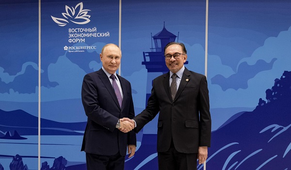 Vladimir Putin dan Anwar Ibrahim di luar sidang Forum Ekonomi Timur di Vladivostok,Rusia pada 4 September 2024/Facebook Anwar Ibrahim