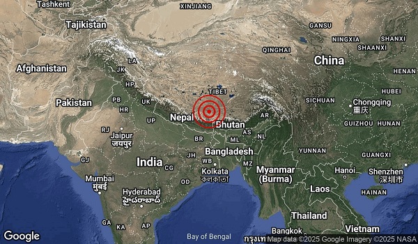 Gempa berukuran 5.4 magnitud itu direkodkan pada pukul 5.11 pagi dan berpusat di koordinat 28.9 darjah utara serta 87.6 darjah timur dengan kedalaman 10 kilometer.