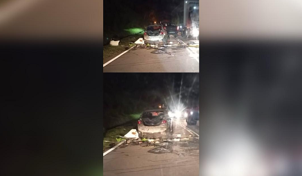Terdahulu,visual sebuah kereta rosak teruk selepas diserang gajah liar di lokasi sama tular di media sosial.