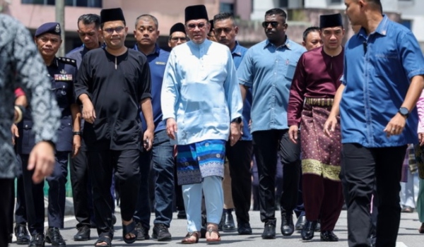 Perdana Menteri,Datuk Seri Anwar Ibrahim (tengah) hadir bagi menunaikan solat Jumaat di Masjid Jamek Ar-Raudhah Kampung Dato’ Onn/ BERNAMA
