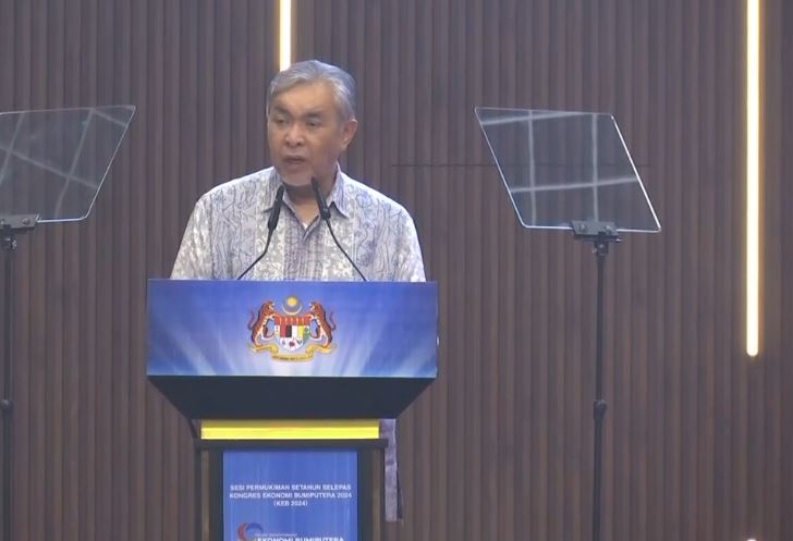 Timbalan Perdana Menteri,Datuk Seri Dr Ahmad Zahid Hamidi berucap merasmikan Sesi Pemukiman Setahun Selepas KEB 2024 di Pusat Konvensyen Antarabangsa Putrajaya (PICC). Foto- RTM