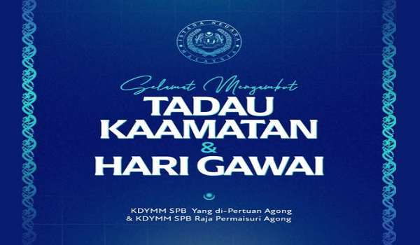 KUALA LUMPUR,30 Mei - Yang di-Pertuan Agong Sultan Ibrahim dan Raja Permaisuri Agong Raja Zarith Sofiah menzahirkan ucapan Selamat Hari Gawai dan Pesta Kaamatan kepada seluruh rakyat Malaysia yang meraikan perayaan tersebut.