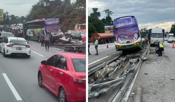 “Siasatan awal mendapati pemandu bas hilang kawalan sebelum terbabas ke kanan jalan dan merempuh pembahagi lebuh raya lalu terhumban ke dalam longkang,” katanya dalam kenyataan hari ini.