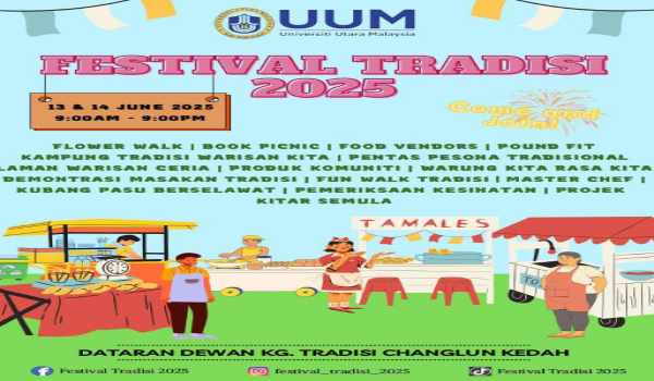 "Penganjuran pertama festival melibatkan kerjasama UUM dan komuniti pada 13-14 Jun lalu di Dataran Kampung Tradisi. Kita dapati,Festival Tradisi mampu memacu pembangunan sosioekonomi masyarakat Changloon melalui penganjuran acara berasaskan komuniti,”katanya.