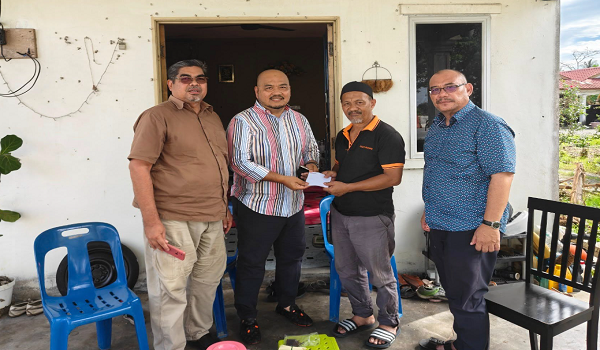Yang Dipertua Persatuan Alumni Maktab Mahmud,Datuk Dr. Zulkifly Mohamad menyampaikan sumbangan kepada ahli keluarga mangsa tragedi Sungai Korok/ Foto FB Datozul Mohamad