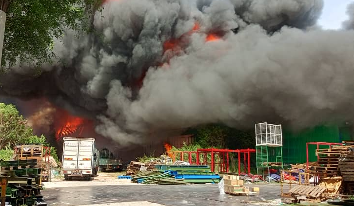 Kilang berkeluasan 30,000 kaki persegi musnah 60 peratus dalam kebakaran petang tadi