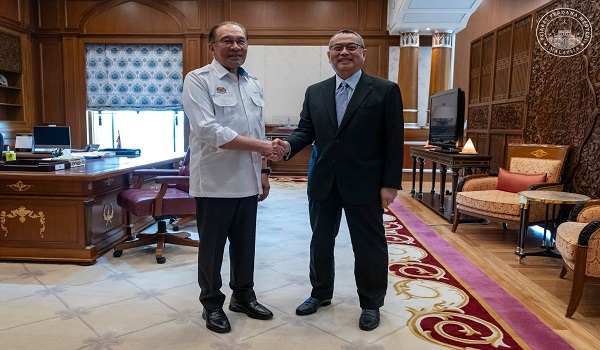 PUTRAJAYA,6 Ogos - Perdana Menteri,Datuk Seri Anwar Ibrahim,hari ini menerima kunjungan hormat Ketua Hakim Negara yang baharu,Datuk Wan Ahmad Farid Wan Salleh,di pejabatnya.