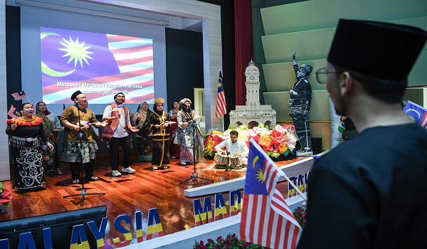 Persembahan patriotik oleh petugas kesihatan pada Majlis Perhimpunan Pagi Hospital Rehabilitasi Cheras (HRC) dan Penyerahan Kit Jalur Gemilang. Foto- BERNAMA
