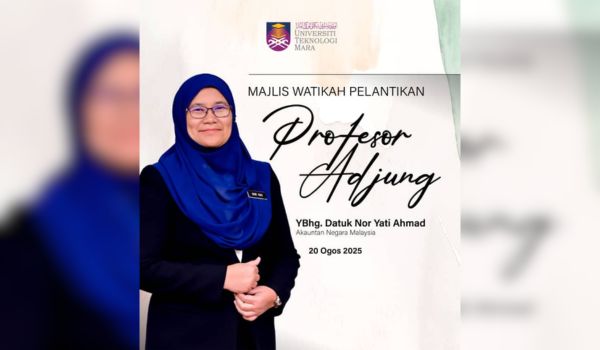 KUALA LUMPUR,21 Ogos- Universiti Teknologi MARA (UiTM) melalui Fakulti Perakaunan mengumumkan pelantikan Akauntan Negara Malaysia,Datuk Nor Yati Ahmad,sebagai Profesor Adjung,sekali gus memperkukuh hubungan akademik dengan sektor perkhidmatan awam.
