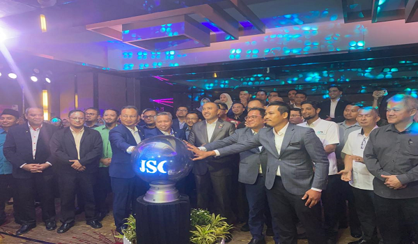 Datuk Mohd Jafni Md Shukor melakukan gimik perasmian Majlis Pra- Pelancaran Johor Smart City Forum 2025 di Senai,Kulai,Johor
