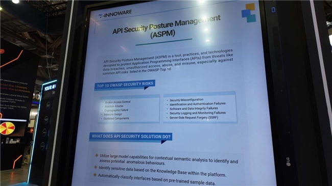 Sebagai tindak balas kepada isu biasa "aset yang tidak jelas, pengesanan kerentanan yang sukar, dan pengesanan kebocoran yang sukar" dalam API (Antara muka Pengaturan Aplikasi) dalam digitalisasi perusahaan, T-INNOWARE membentangkan penyelesaian ASPM di tapak, yang menyediakan penyelesaian satu henti yang mematuhi piawaian pematuhan global seperti GDPR dan Undang-undang Keselamatan Data.