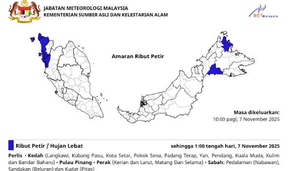 Amaran ribut petir di beberapa negeri utara dan Sabah
