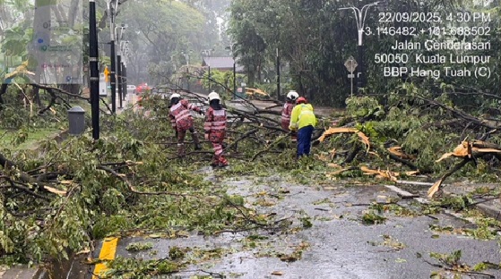 Beberapa kes pokok tumbang dilaporkan di Kuala Lumpur, tiada kecederaan dilaporkan